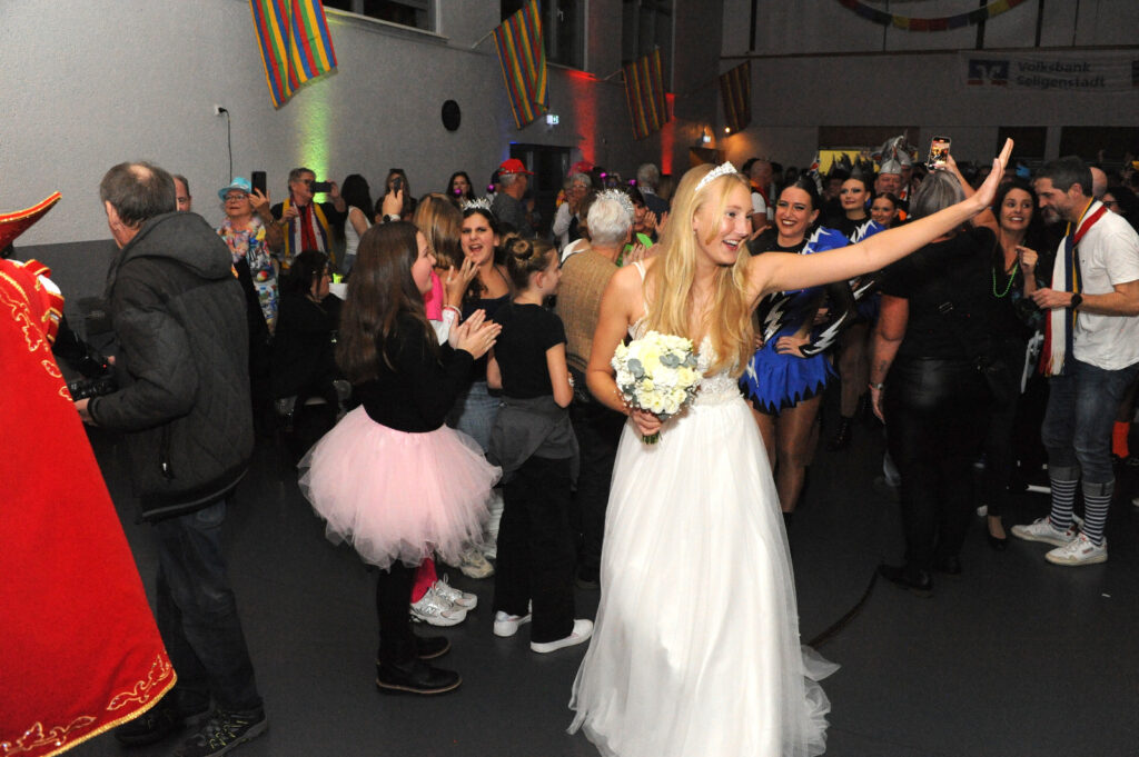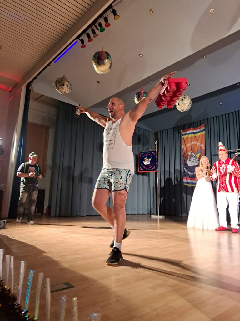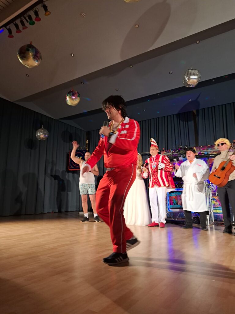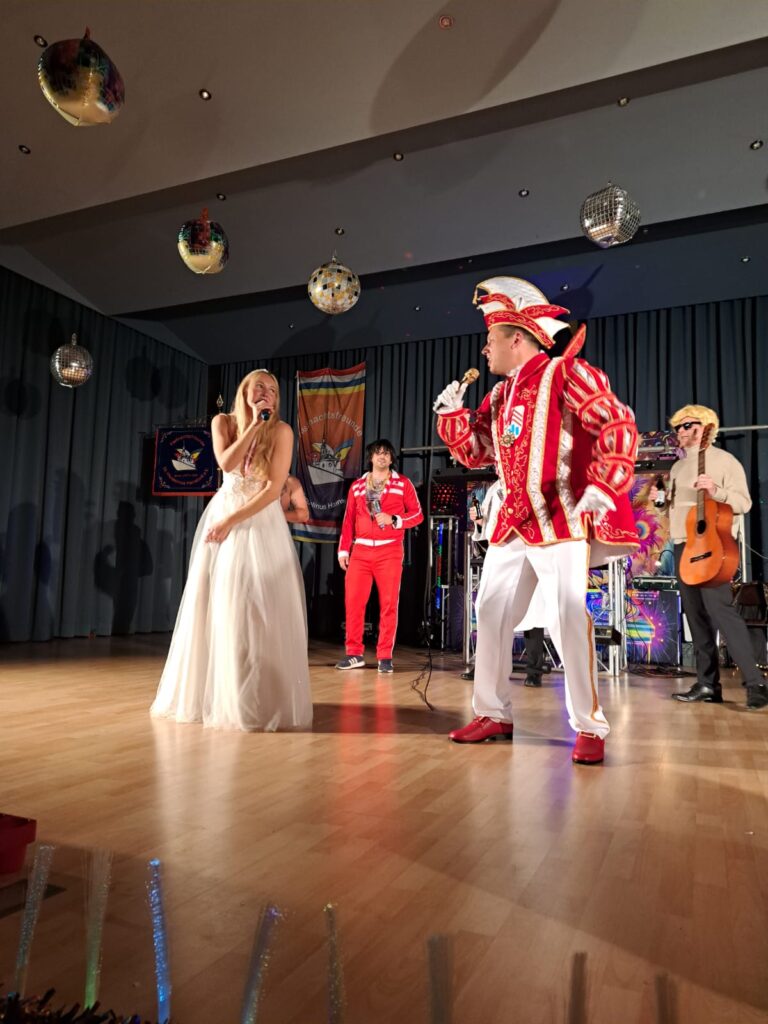 Anschließend gab es zu Ehren des Prinzenpaares eine Playback sowie der Elfer, bei dem das Prinzenpaar schließlich selbst zum Mikrophone griff und mitmachte und damit den Start fürs Party machen machte.