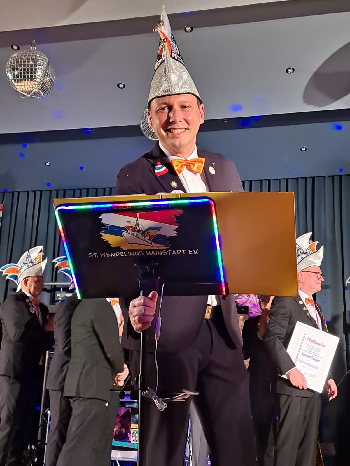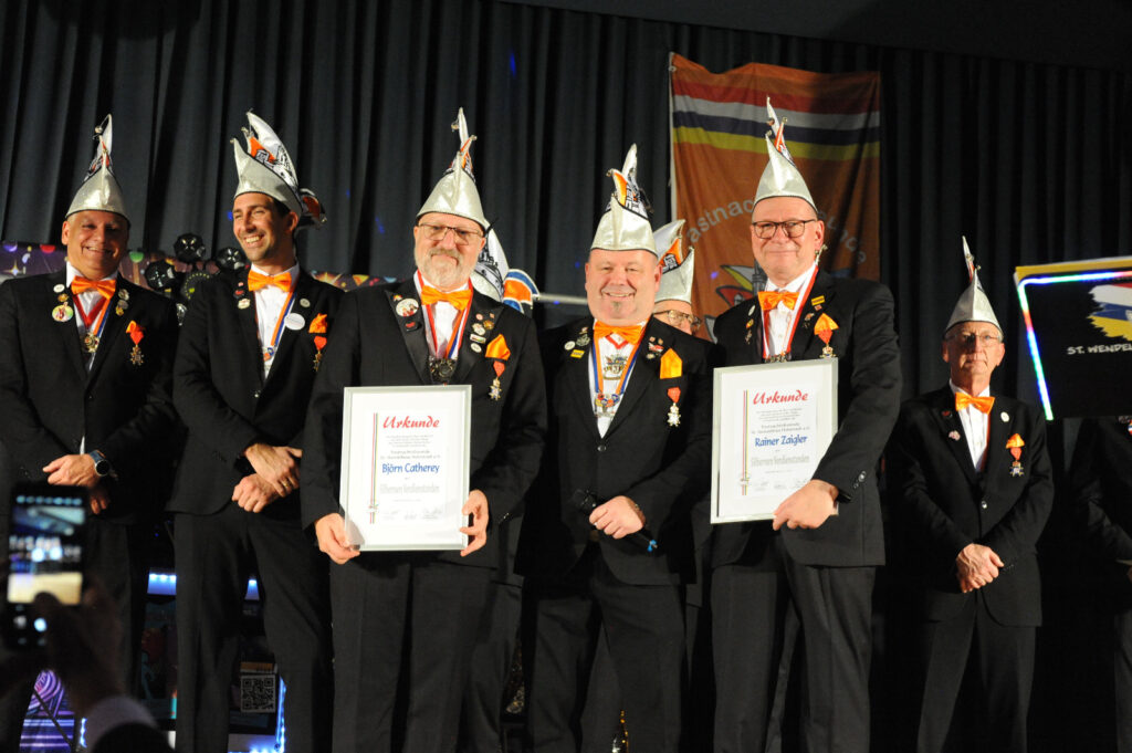 Völlig überrascht wurden Björn Catterey & Rainer Zeigler, die für Ihren unermüdlichen Einsatz für den Verein mit dem silbernen Verdienstorden der Fastnachtsfreunde St. Wendelinus ausgezeichnet worden sind.