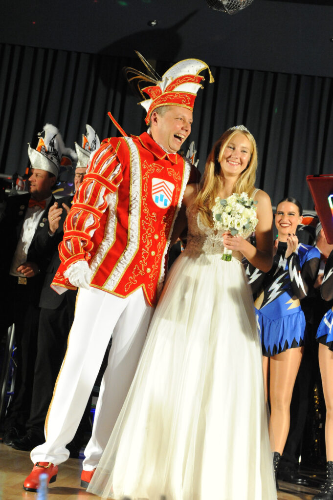 Gegen 22 Uhr folgte schließlich der Höhepunkt des Abends: die Vorstellung und Inthronisierung des 63. Haaschter Prinzenpaares. Mit viel Applaus und strahlenden Gesichtern wurde das neue Prinzenpaar, Prinz Jürgen III. und Prinzessin Anna II. begrüßt, welches in der kommenden Saison 2025/2026 die Haaschter Narren regieren.