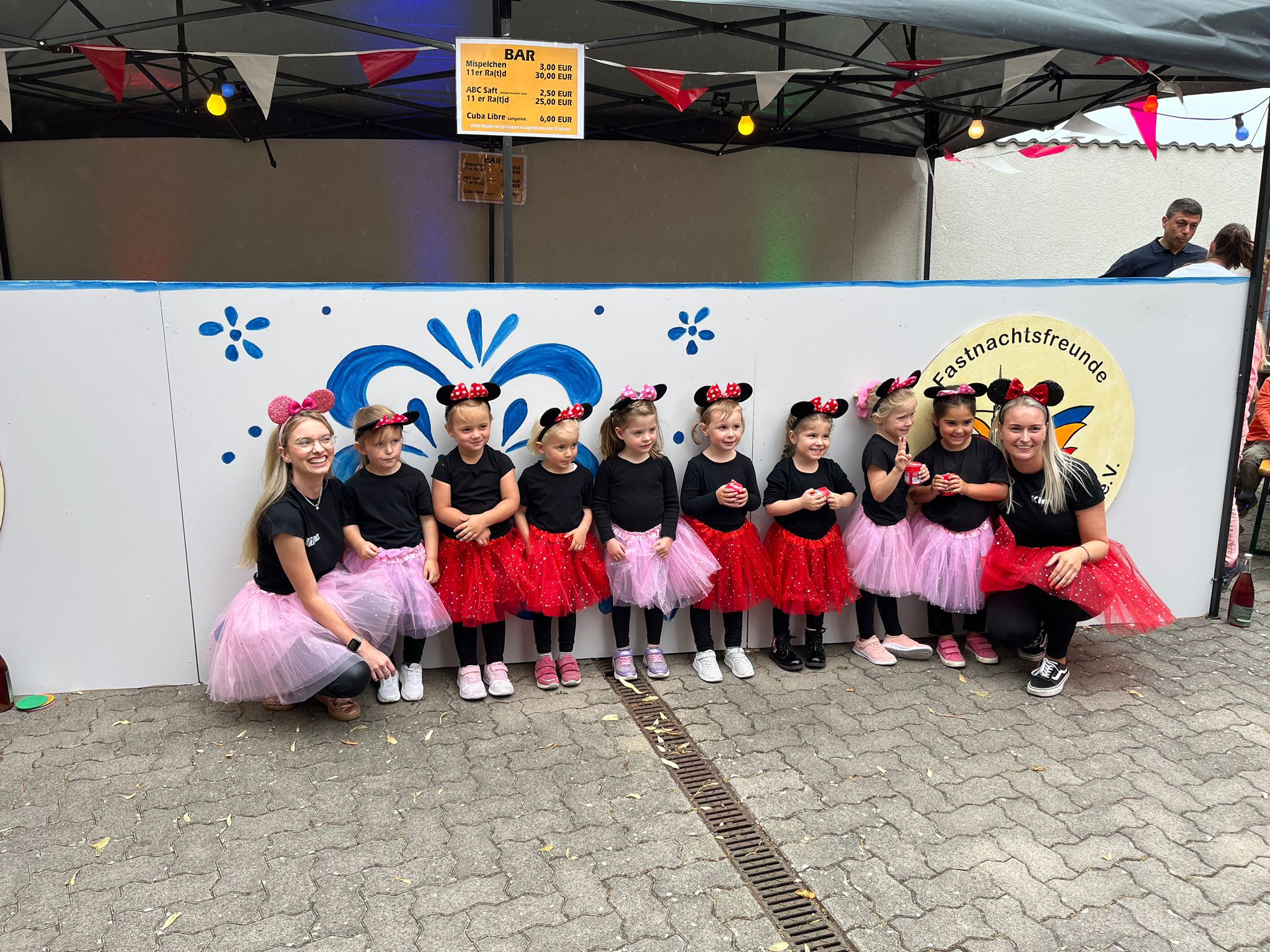 Erste Bühnenerfahrungen haben die Tanzmäuse schon auf verschiedenen Festen, sowie auf der Galasitzung der Fastnachstfreunde mit verschiedenen kleinen Tänzen sammeln dürfen.